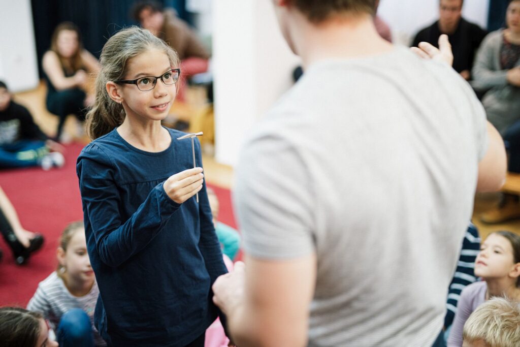 – J.K.: Ez a formától is függ. Ha kis csoportokra osztjuk őket, akkor ezt könnyebb kezelni. De mindenki szabadon dönthet, mennyire aktív a történetben. A kicsik hajlamosabbak arra, hogy elbohóckodják. Ám azzal, hogy a velük szemben álló, szerepben lévő színész-drámatanár komolyan veszi a válaszukat, és következménye lesz a bohócságból adott válasznak is, kihúzza ennek a méregfogát.