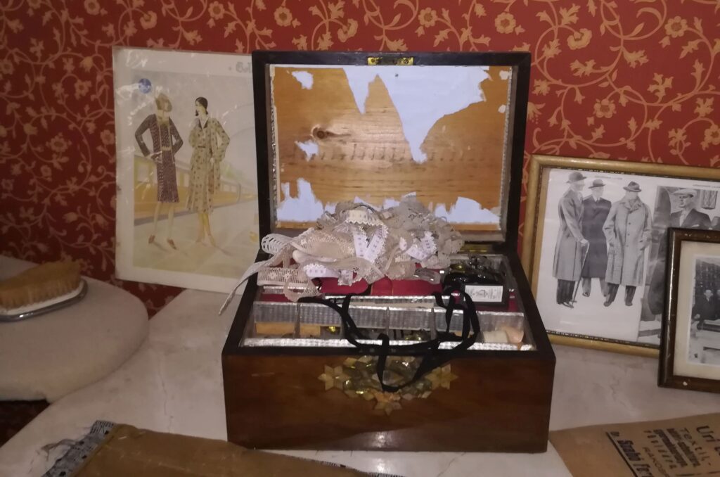 A Csányi utca 5. szám első emelete sok mindent látott: az ott lakók életét – amennyire csak tudta – konzerválta bizonyos szinten/mértékben. Kicsit olyan, mintha el sem mentek volna. Minden úgy van, ahogy annak idején volt. Megterített asztal áll az étkezőben, invitálja a Sábeszt ünneplő tehetős zsidó család tagjait. A gyerekszobában még ott várja a héber ábécé a tanulni igyekvő gyermekeket. A konyhában mandulás kalács sütésére áhítozik egy fehér bárány süteményforma, a sózódeszka olyan, mintha nemrég használták volna. A szomszédasszony kis, egyszobás lakásának asztalán újságból kivágott hirdetések, termékreklámok hevernek szanaszét. Mellette a szabó és a fényképész üzleteiben még díszletként ott állnak a ruhákkal „díszített” paravánok, valamint a fénykép hátteréül szolgáló festett fal és függönyök. A rabbi szobája olyan a roskadozó könyvespolcokkal és az asztalon hagyott tárgyakkal, mintha éppen csak elugrott volna látogatóba egyik hívéhez, de jön majd vissza, hogy folytassa a felkészülést a legközelebbi istentiszteletre.