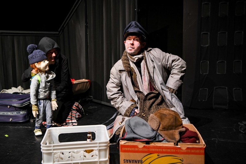 Soma tehát gyerekként az egyetlen báb, őt Kófity Annamária kelti életre nagy empátiával. Nincs benne semmi negéd, nem vékonyítja el a hangját természetellenesen, és sikerrel kikerül minden olyan csapdát, amit a bábszínházban-színésznő-játszotta-kisfiú-szerep rejt. A felnőtt karaktereket a színészek színészi valójukban alakítják. Egyszerű és evidens döntés. Jórészt gyors és pontos skicceket kell nekik felvázolni, de nagyobb feladatban is megmutathatják magukat, a két gyerek és egyéb teendők között egyensúlyozó szülőpár szerepében Nagy Anikó és Nagy Tamás, a nem taszító, nem megvetendő, de a nézőben semmilyen megértést ki nem váltó hajléktalanként pedig Bandura Tibor.