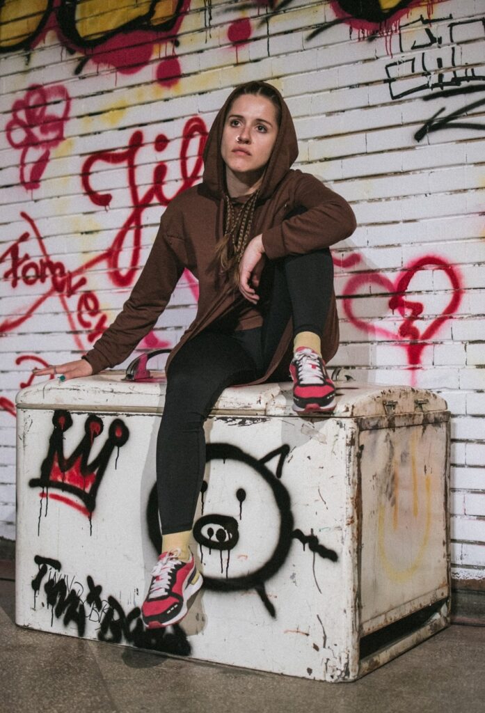 Hőseink 18-19 évesek. Hősök? Inkább ismerősök. Gergely Ágnes jelmezei pontosak, és mint az amerikai gimis filmekben, az első pillanatban segítenek azonosítani a státuszt és a jellemet. A rebellis Jill unalmas középbarna, vastagabb, kapucnis pólóruhája páncél, mindenféle nőiességet elrejt. Kínai boltban vehették, a márkátlan sportcipőt meg valószínűleg a szezon végi kiárusításon. Az örök kiközösítetten, Bobbyn lóg a két számmal nagyobb póló meg a farmer, csak épp az olcsóság, a gagyi, nem pedig a baggy stilo jegyében. Tina a szomszédlány, a rendes, a finom, az átlagos. Fekete crop top, bézs culotte, simán benne van, hogy jön a herceg vagy legalább egy tündérkeresztanya, és ő Hamupipőkévé változik.