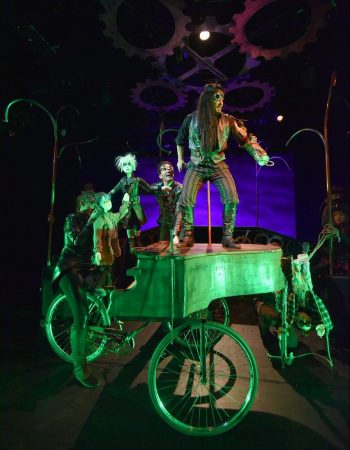 100 perc két részben hosszúnak tűnik, de az első felvonás pörög, és ebben nagy szerepe van Németh János zenéjének és Fosztó András koreográfiáinak. A váltakozó hangulatú, fülbemászó, jó ritmusú dalok jól időzítve követik egymást, a vegyes bábtechnikai bravúrok pontos összehangoltsága pedig annyira sokszínű és ingerdús látványvilágot alkot, hogy még a nehezebben leköthető nézők is biztosan találnak valamit, ahova lehet nézni. A második felvonást viszont épp az ingergazdagság teszi nehézkessé, hosszúra nyúlnak azok a zsúfolt jelenetek, amikor egyszerre 6-8 színész van a színpadon (plusz bábok), és a dalok is késve rázzák fel a közönséget. A lenyűgözően sikerült első részhez képest a második eszközeiben is szegényesebbnek hat, jelképes helyszíneit fárasztóbb követni, ez pedig meglátszik a szünet utáni nézőtéri mocorgásokon, kikéredzkedéseken.