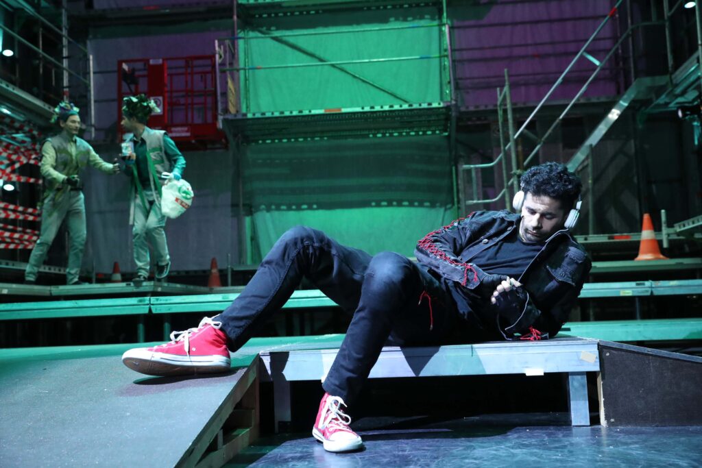 A Horváth Bálint és Tengely Gábor tervezte díszlet egyáltalán nem ígéri Tündérországot, pedig odakeveredtünk, Vitányi-Juhász István csatából érkező Rózsakirályával együtt. Az első kép ködös, sötét. Két katona forma ember settenkedik, Bora Levente és Bársonyosi Dávid, akik aztán majd gyorsöltözések közepette váltanak rendre figurát. Hol a Rózsakirály, hol pedig Varjúháj, a Tündérkirály (Szukenyik Tamás) fegyveres erőinek képviseletében mutatkoznak, puskára emlékeztető hosszú csővel a kezükben. A háborús színtérnek látszó színpadon kibontakozó Tündérországgal nyilvánvalóan gond van. Lerombolták vagy lepusztult, mindenesetre alapos felújításra szorul, és az átépítés alatt üzemel ugyan, de nem túl áldásosan.
