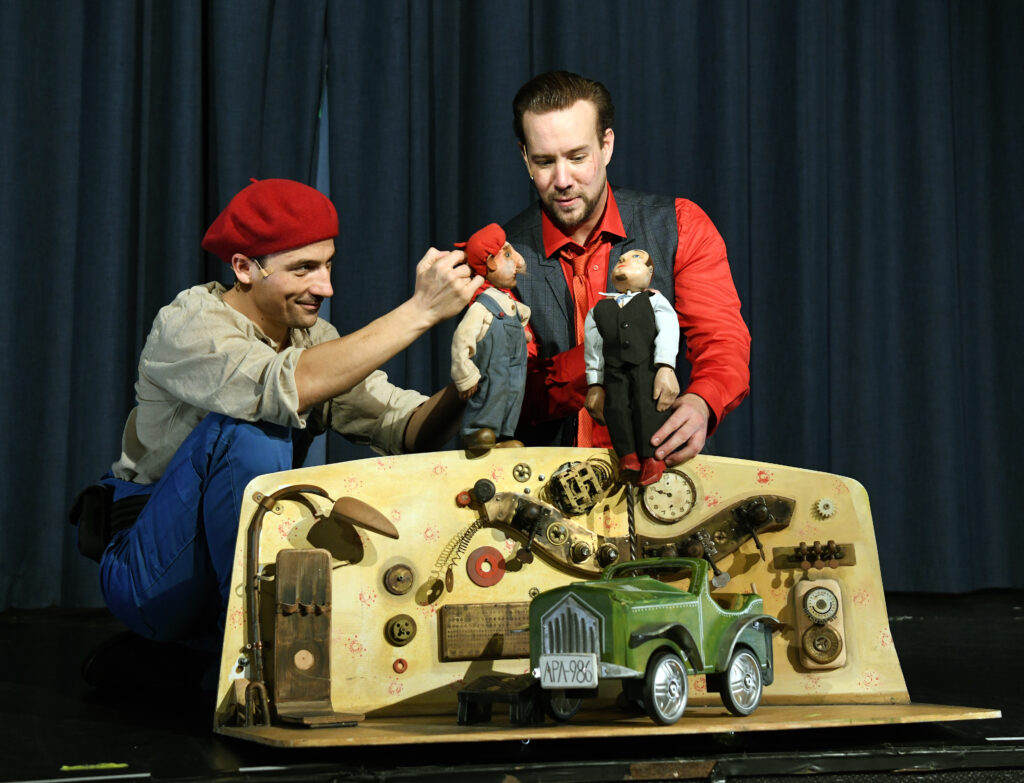 Magát a történetet (Szabó Attila meséjét) már ismerhettük a Hepp Trupp Autósmese című előadásból – itt írtunk róla –, onnan valók a bábok és a díszletelemek is. Ámde a mostani bemutató főszerepét játszó Klem Viktor kreatívan nyúlt az alapanyaghoz, versfolyammá írta, vicces rímekkel, up to date stílben, mai szlengben. Cool – alighanem ezt lehetne rá mondani. (A Basszus! szófordulatról én speciel azt gondolom, hogy a kelleténél talán kettővel többször hangzik el – ez a fejcsóválás a magamfajta túlkoros, radikálisan konzervatív nézőtől el is várható.) Zenés lett a darabka, Szitha Miklós komponálta a betétdalokat. Ezekben vagy ezek mellett kedves életvezetési tanácsok hangzanak el könnyeden gyerekeknek, felnőtteknek: keresd a jót, az igazit, a pillanatot, ilyesmi.